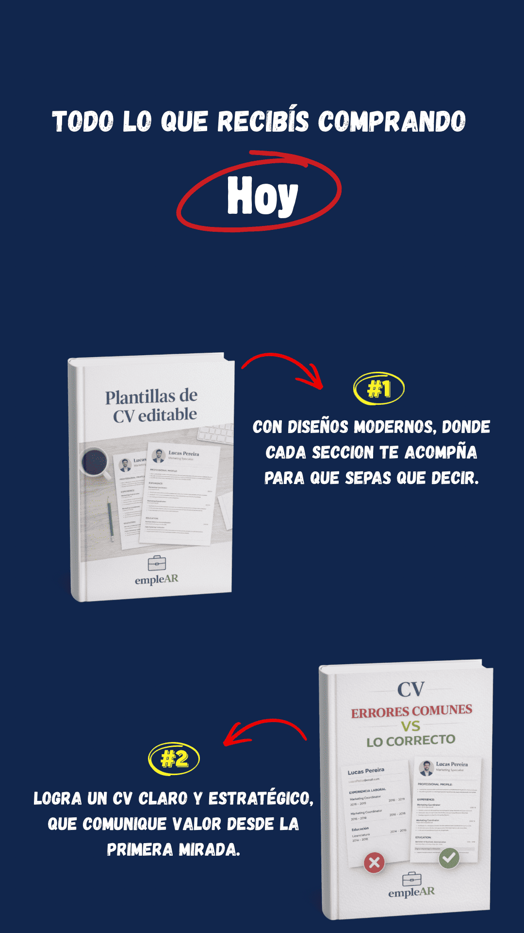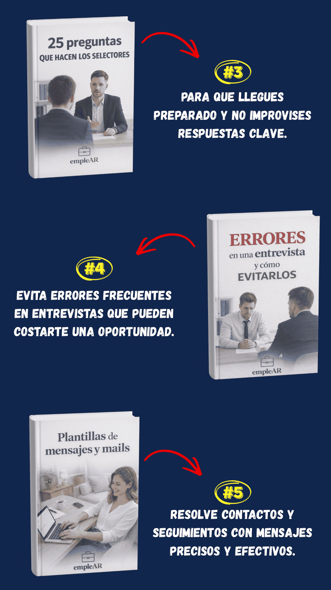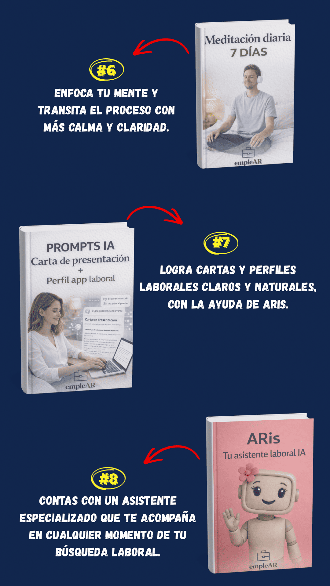 Incluye el programa principal empleAR, organizado en capítulos que funcionan como un proceso guiado, para que avances paso a paso, más 9 bonus de regalo con herramientas prácticas para aplicar lo aprendido.